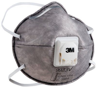 The 3M 9923V is a disposable specialty respirator with a non-aluminium nose clip designed specifically for use in flammable atmosphere, e.g. coal mines. The 9923V respirator is compatible with other 3M personal safety products, e.g. eyewear and earplugs.