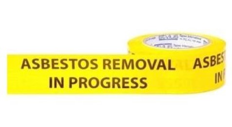 Asbestos Removal In Progress Adhesive Hazard Tape Black on Yellow 75mm x 50mt