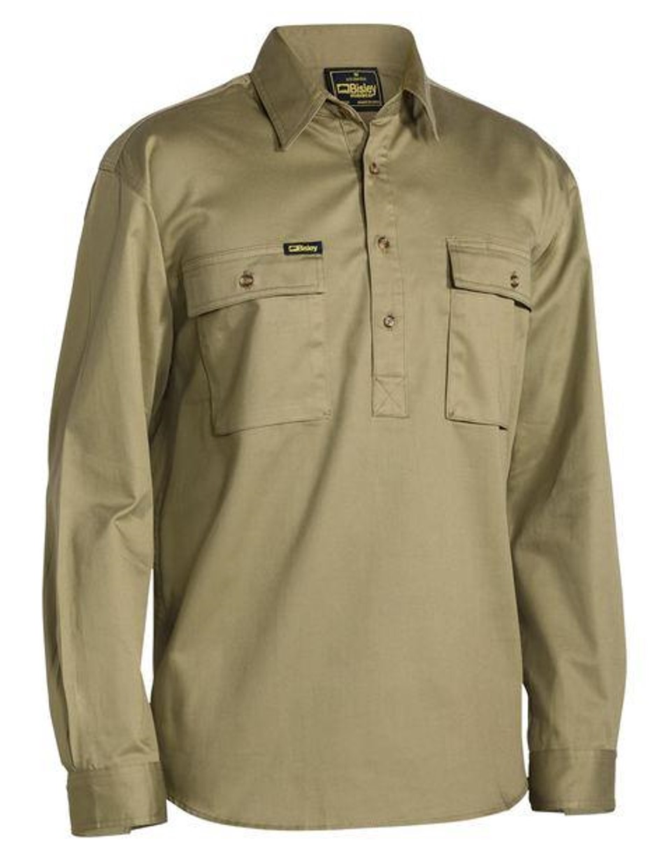 BISLEY Closed Front Cotton Drill Shirt 100% Cotton Preshrunk Drill 190gsm L/S