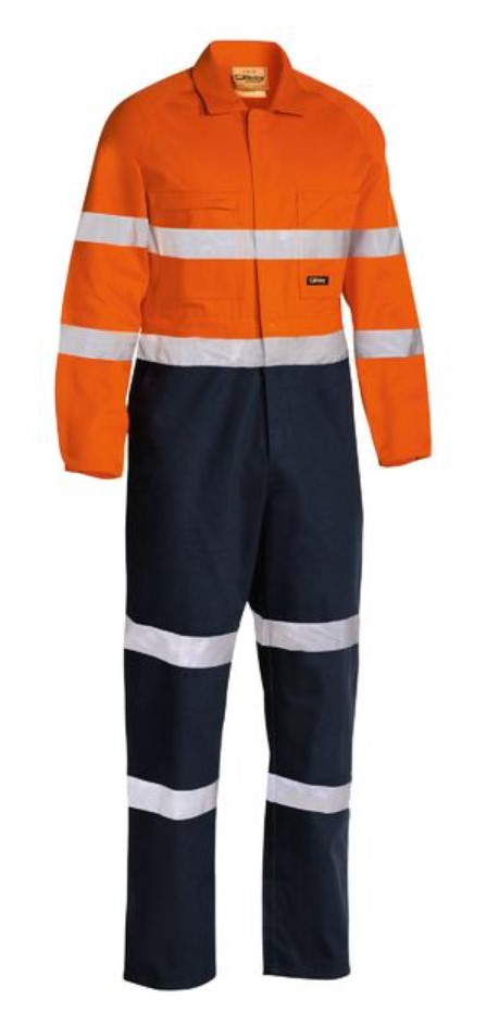 BISLEY 3M TAPED HI VIS COVERALL 100% COTTON PRESHRUNK DRILL 310GSM