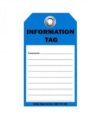 Information tag used to provide details of the marked machinery/equipment, allows user to provide specific information such as date, time and more.