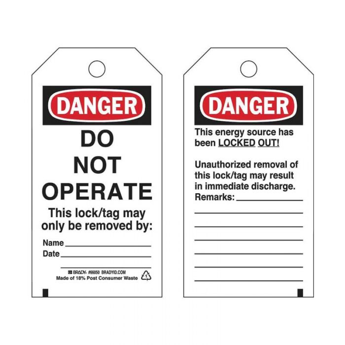 BRADY Lockout Tag - Do Not Operate White/Red/Black (Reverse Side-Unauthorised Removal)