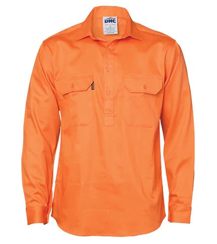 DNC Closed Front 100% Cotton Drill Shirt 190gsm L/S