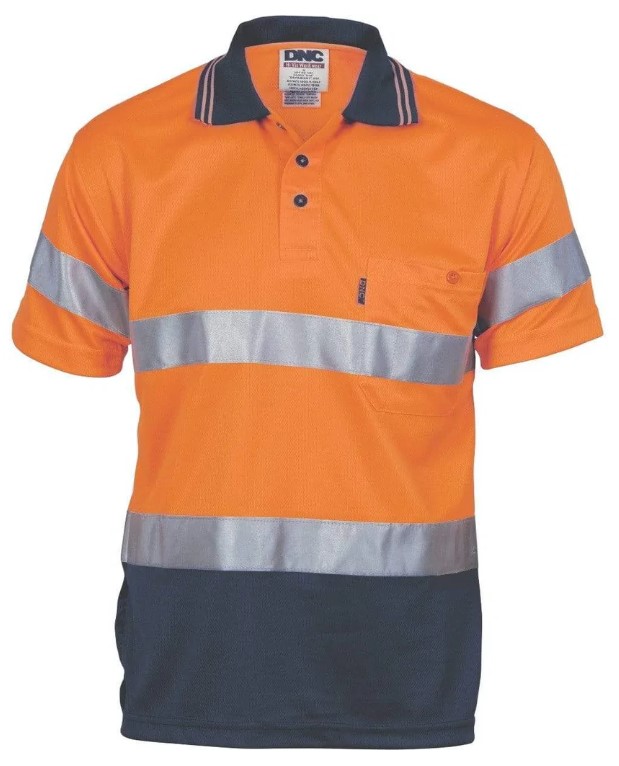 DNC Hi Vis Two Tone Cotton Back Polo Shirt with CSR R/Tape 185gsm S/S