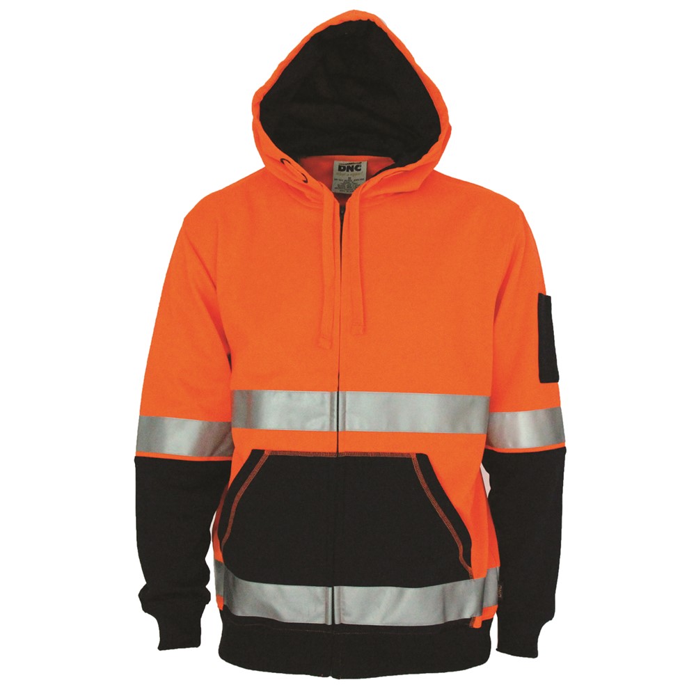DNC HiVis 2 Tone Full Zip Super Fleecy Hoodie with CSR R/Tape 300gsm