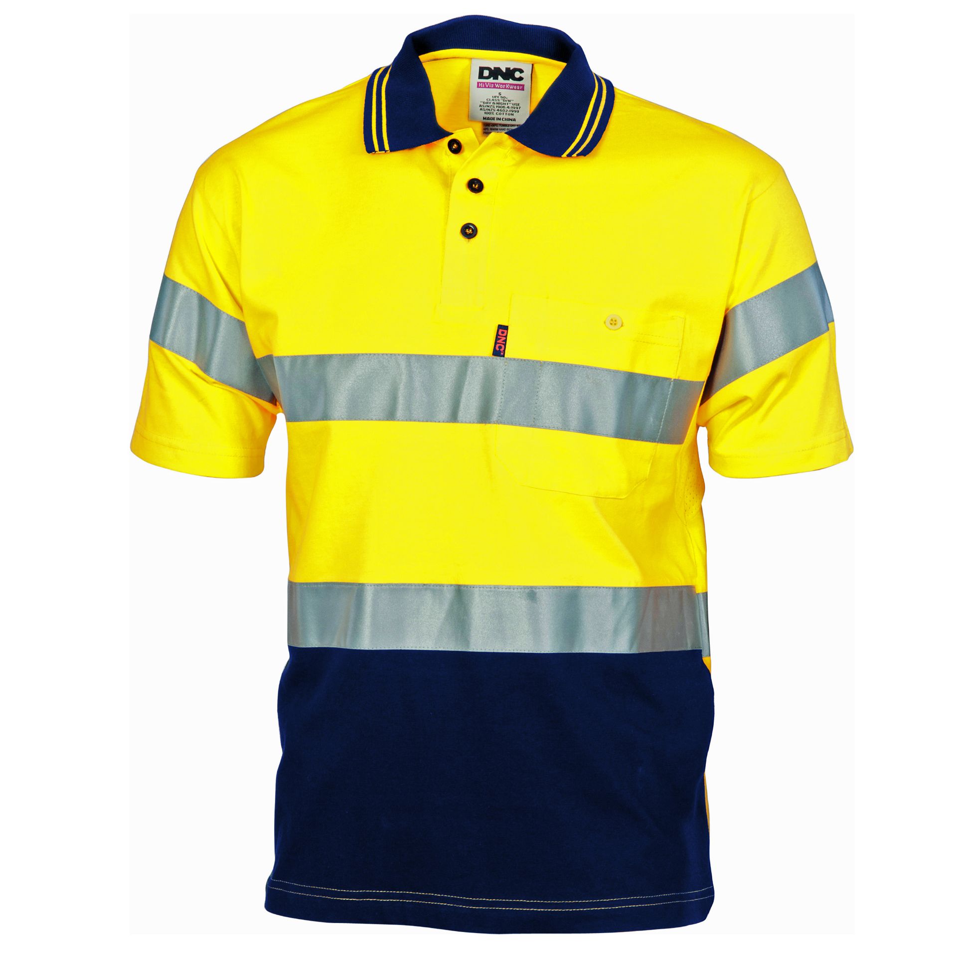 DNC HiVis Cool-Breeze 100% Cotton Jersey Polo Shirt with 3M R/Tape and Under Arm Cotton Mesh Vents 200gsm S/S