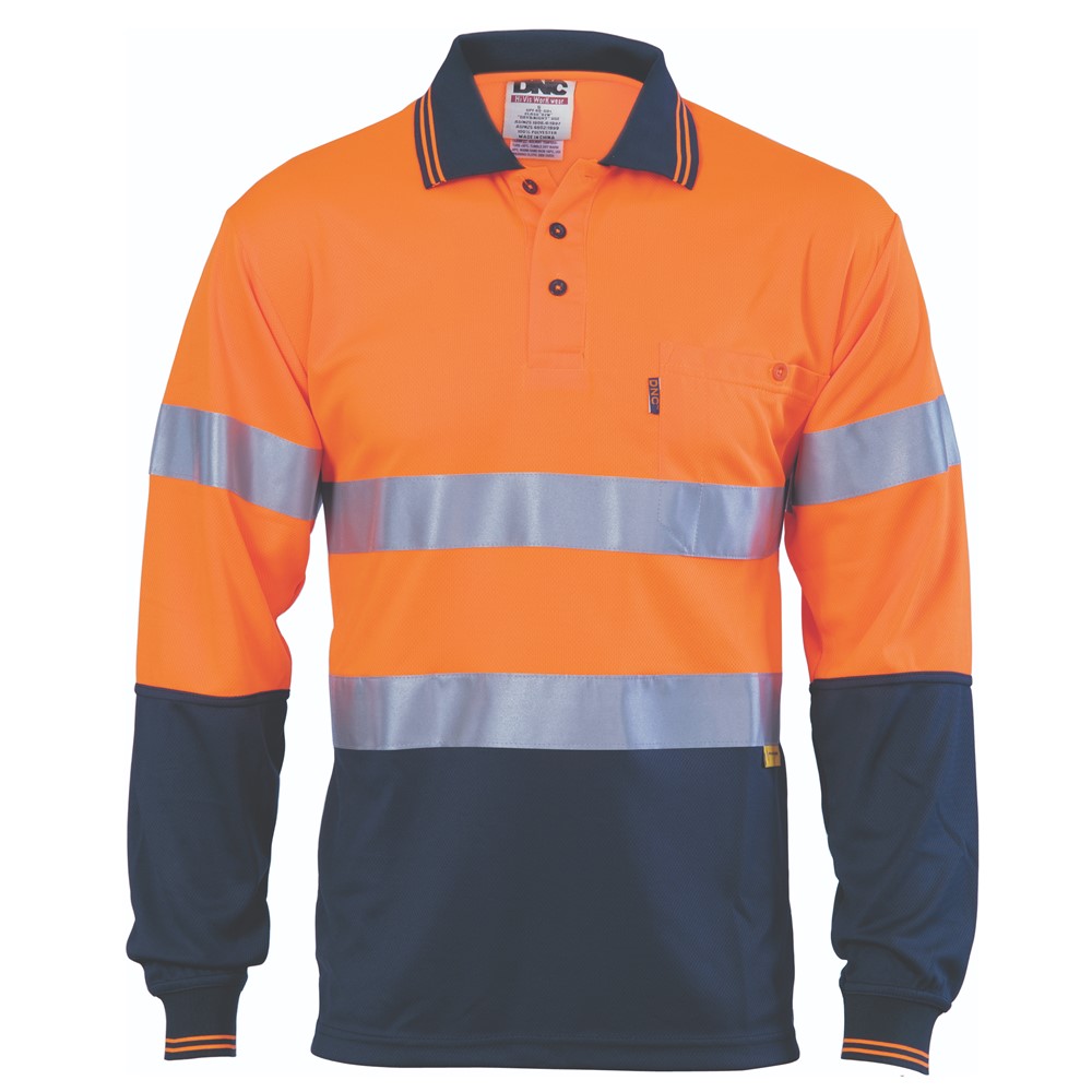 DNC HiVis D/N Cool Breathe 100% Polyester Polo Shirt with 3M8906 R/Tape 175gsm L/S