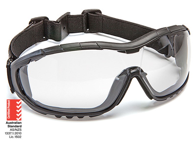 The supplied elastic strap with quick release clip can be interchanged with the sidearms, converting the spectacle into a goggle