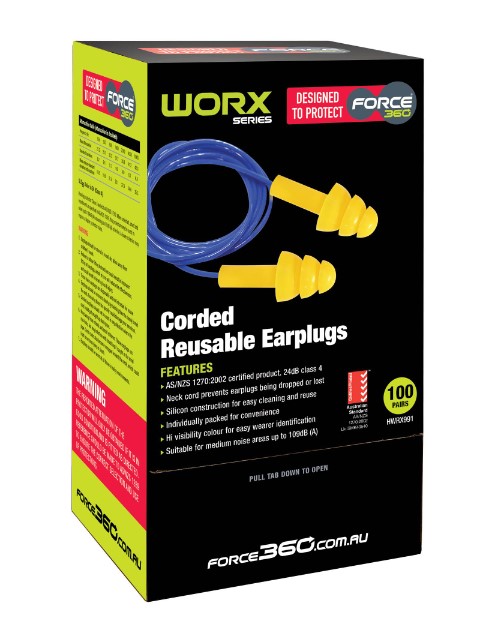 Force360 Silicone Corded Reusable Earplug Class 4 24dB