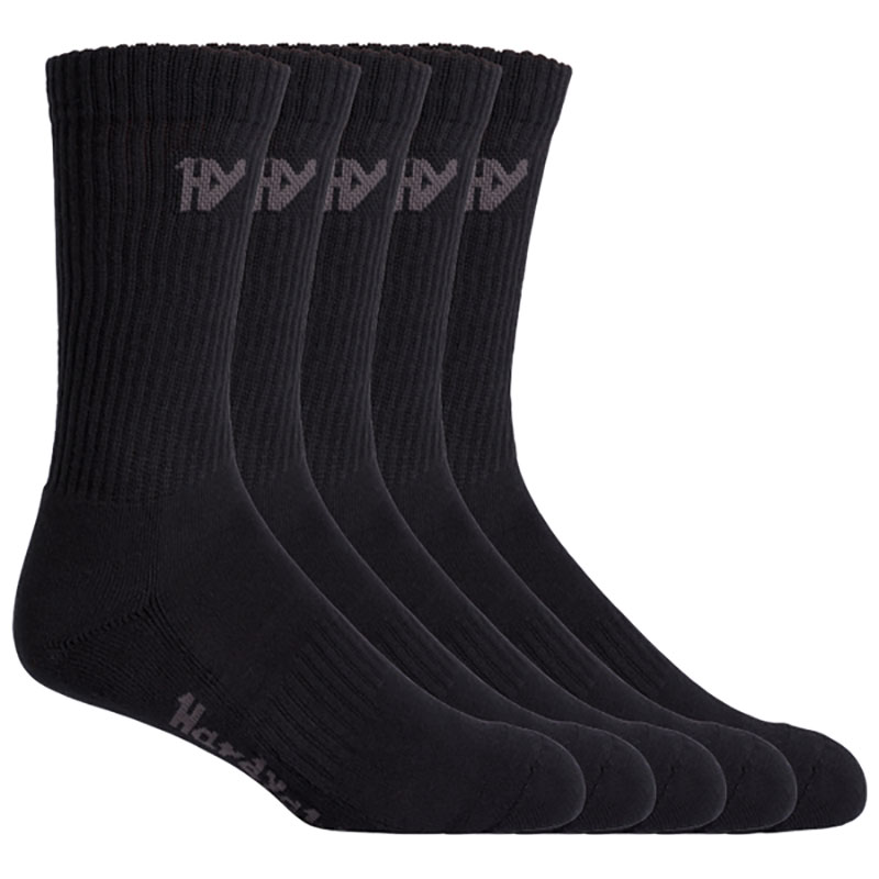 HARD YAKKA Mens Core Padded Cotton Rich Crew Work Sock Black > Size 7-12