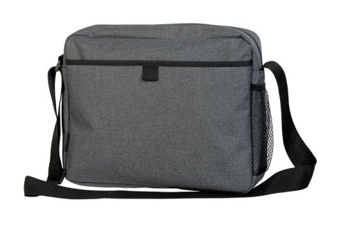 600D canvas-like polyester with PVC backing Front slip pocket fastened with Velcro