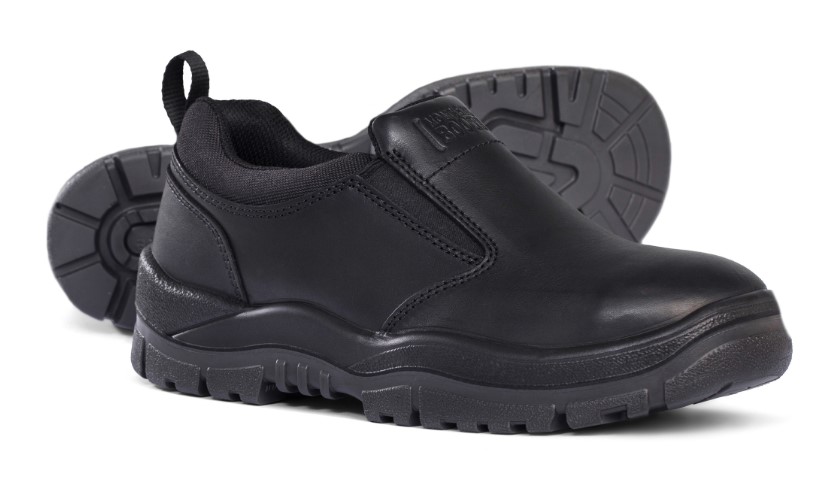 KING GEE Black Lace up Low Cut Grip 3000 with Memory Foam Footbed Rubber Bump Cap and Steel Toe