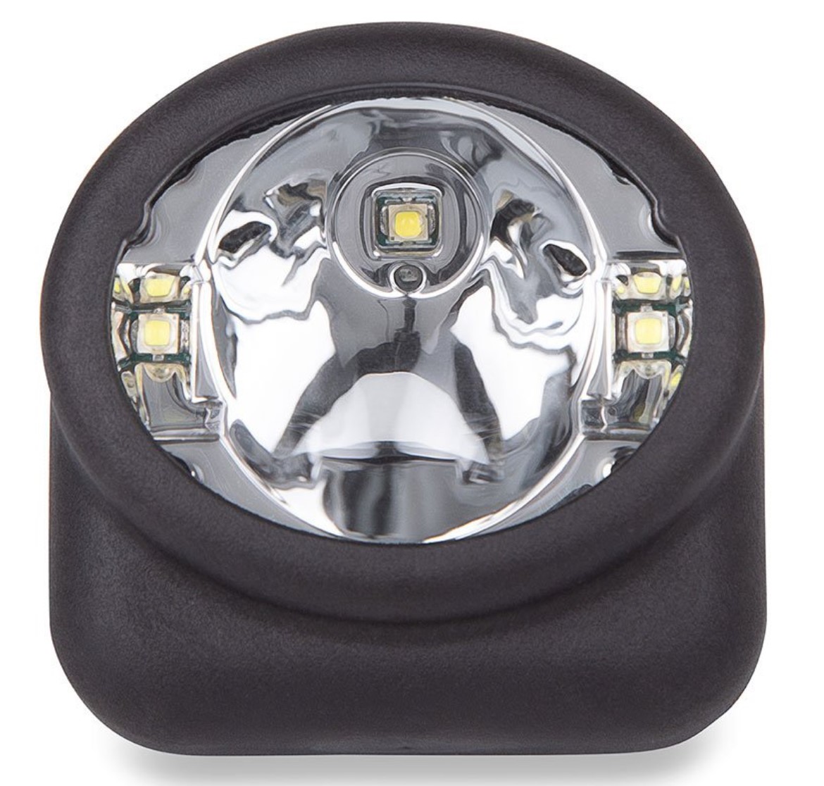 The clip on the back can be used for attachment, for examples to a headband or to a harness of breath apparatus. It is compatible with Cap Lamp brackets for safety helmets in any standard of the world.