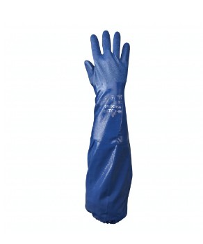 SHOWA Cotton/Polyester Lined Chemical Glove with Nitrile Coating 650mm Long Blue Food Approved