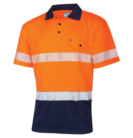 TRU WORKWEAR Recycled Anti-Microbial Micromesh Two Tone Hi-Vis Polo Shirt with Segmented Tape S/S