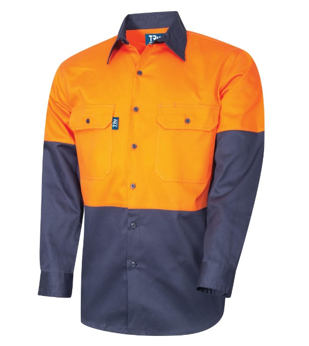 TRU WORKWEAR Regular Weight Hi Vis 100% Cotton Drill Shirt 190gsm L/S